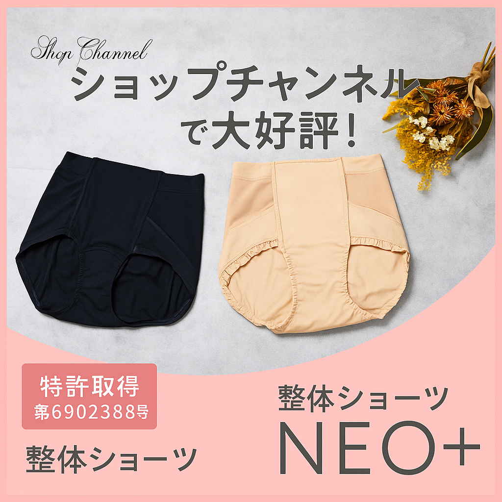 「整体ショーツNEO+」は、姿勢の専門家が開発した“はくだけ整体”を叶える骨盤サポートショーツです。骨盤まわりの筋肉と姿勢バランスに着目し、毎日のインナーとして取り入れるだけで体のゆがみケアをサポートします。