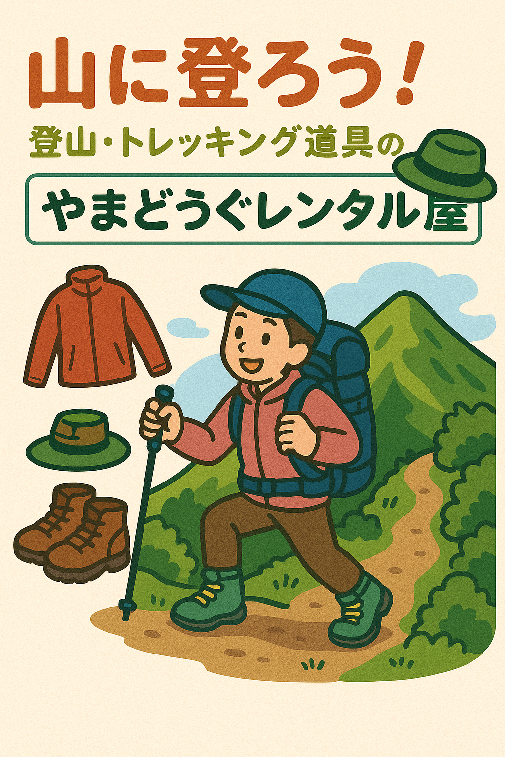「やまどうぐレンタル屋」は、**富士山をはじめとする本格的な登山から、気軽なトレッキングまで対応する**、登山・トレッキング用品専門のレンタルサービスです。登山に必要な道具を一式、高品質で清潔な状態でレンタルできるため、「道具がないから登山を諦めている」「初期費用が高くて手が出せない」といった初心者や登山に不慣れな方の悩みを解決します。