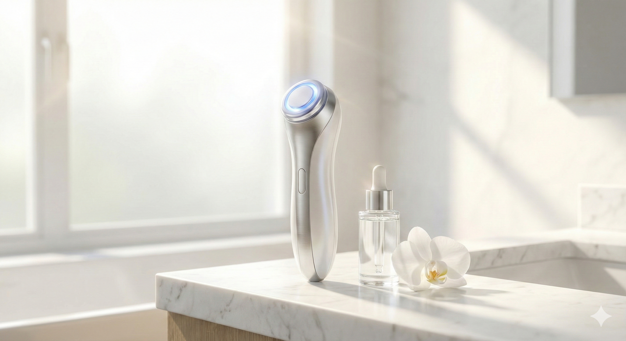 ドクターテングルは、LED照射、音波振動、そしてじんわり温かい温熱機能を一台に凝縮。肌の状態や目的に合わせて使い分けることで、角質層のすみずみまで美容成分の浸透をサポートし、健やかでキメの整った肌へと導きます。
