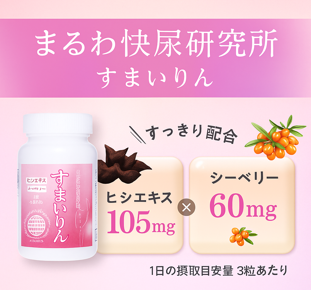 すまいりんは、トイレの悩みに科学的根拠を持つとされる**特定の機能性関与成分を配合**した機能性表示食品です。この成分が、排尿の回数や尿意切迫感、そして残尿感の軽減をサポートすることが報告されています。
