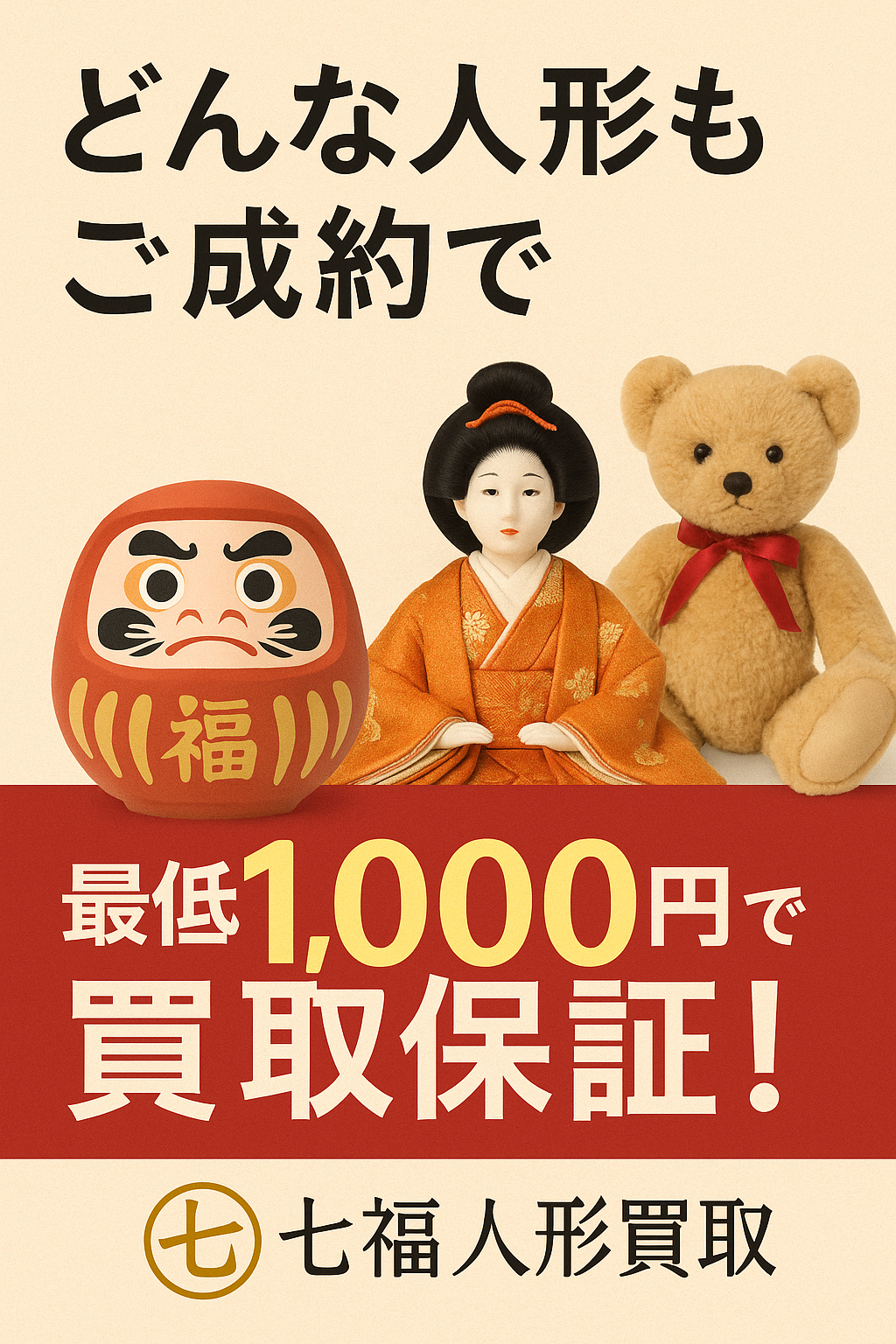 大切にしてきたお人形の新しい旅立ちを、七福がサポートいたします。安心の最低1000円買取保証で、まずはお気軽にご相談ください。