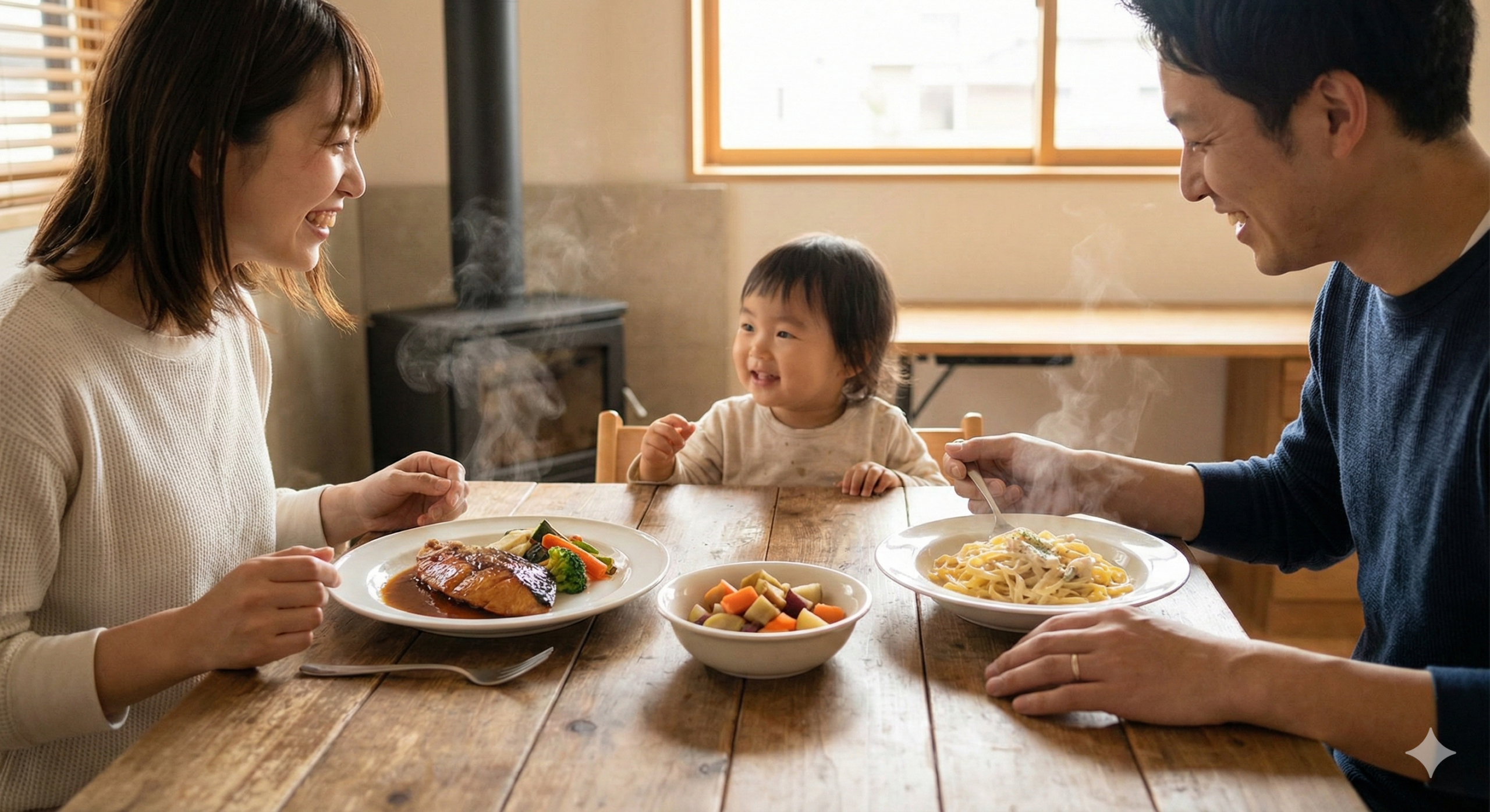 和洋中、魚料理から肉料理まで、バラエティ豊かなメニューが揃っています。幼児食だけでなく、大人向けのメニューも充実しているため、その日の気分や家族の好みに合わせて自由に組み合わせが可能。毎日の食事に新しい発見と楽しみが生まれます。