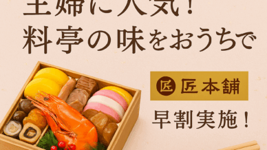 おせち・季節限定 2026年お正月はこれで決まり!匠本舗の料亭おせちが主婦に選ばれる理由とは? 年末年始のごちそうにぴったり!2026年用の匠本舗おせちは、有名料亭監修・できたて冷蔵配送で大人気。主婦に選ばれる理由やお得な早期予約キャンペーン情報を詳しく紹介します。 2025.10.26 おせち・季節限定